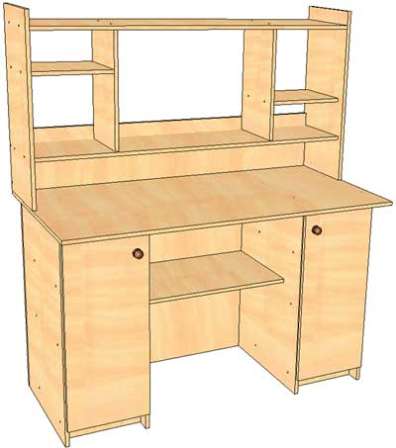 Две тумбочки с полками за дверью. Крышка (1800х750) с пластиковым износостойким покрытием. Тоцы крыши, фасады ящиков облицованы кромкой ПВХ толщиной 2мм. Высота стола – 900 мм.
