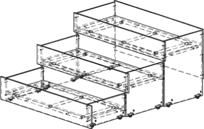 Кровати для дошкольных учреждений трех ярусные выдвигаются последовательно, одна за другой, на роликовых опорах.