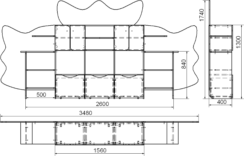 Все корпуса модулей выполнены из ЛДСП одного цвета. Фасады (дверцы) – различных цветов и могут оговариваться при заказе.