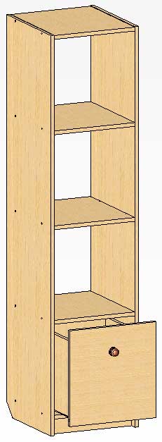 Стеллаж открытый СГ-4, с тремя открытыми нишами и съемным ящиком. Используется в детских дошкольных учреждениях, как отдельно стоящий или при формировании секции из стеллажей
