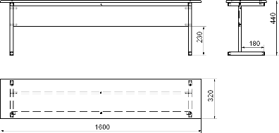 Скамья выполнена на металлическом каркасе из прямоугольного профиля. Защитное - декоративное покрытие - полимерная эмаль светло-серого цвета. Сидение скамьи изготовлено из ламинированного ДСП, торцы сидения оклеены кромкой ПВХ толщиной 2 мм. Сидение скамьи крепится к металлическому каркасу с помощью болтового соединения