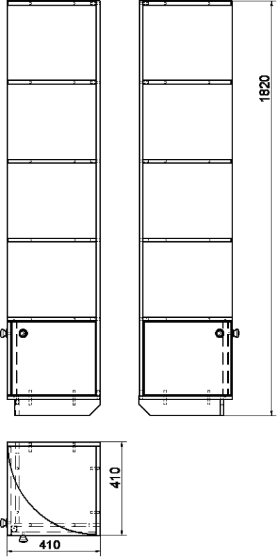 Стеллаж угловой с радиусными полками и тумбочкой СБУ-5.