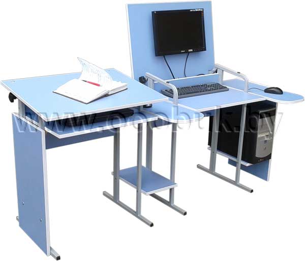 Современный подход к формированию рабочего места в кабинетах информатики можно обеспечить при использовании компьютерного стола КСП-2 с поворотной крышкой.