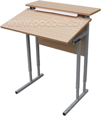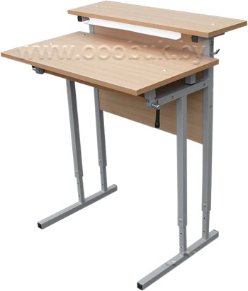 Столы двухместный СРВН-4 и однометный СРВН-41 с регулируемой высотой и регулируемым наклоном наклоном крышки стола и предметной полкой имеют плавную регулировку наклона крышки стола в пределах 0...18 градусов. Изменение угла наклона крышки стола (0...18 град), осуществляется плавно при помощи шарнирного соединения. Фиксация крышки в определенном положении осуществляется при помощи 2-х фрикционов входящих в состав шарнира. Размер крышки стола СРВН-4 (1200 х 430), а СРВН-41 (600х430) мм.
