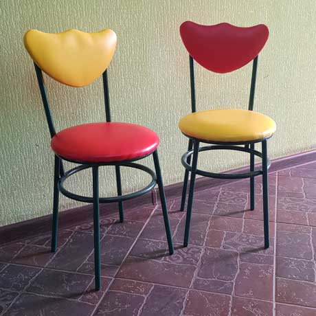 Сидение и спинка обтянуты искусственной кожей различных цветов.