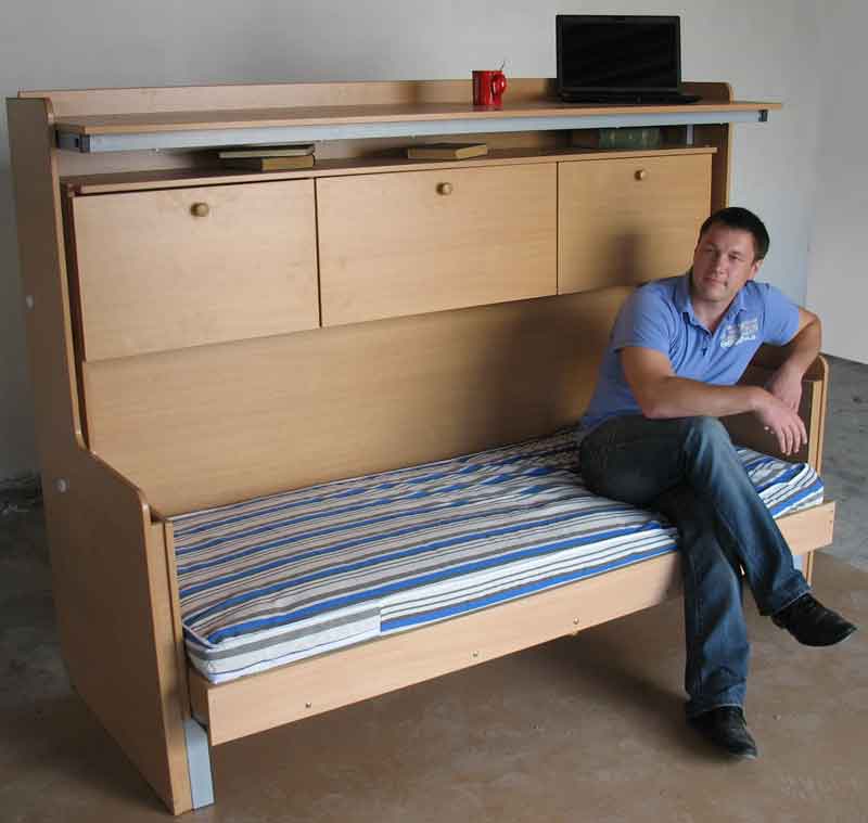 Габариты трансформируемого стола – кровати 2100 х 780 мм (в плане), что позволяет заменить имеющиеся кровати на трансформер стол-кровать ТСК- 2100, не нарушая предыдущей планировки комнаты.