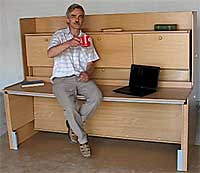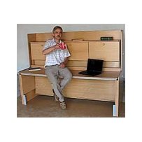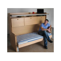 Поднимающийся над кроватью стол размером 2000 х 500 мм обеспечивает доступ к спальному месту и возвращается обратно на высоту 760 мм, для работы за ним. Благодаря параллельному перемещению стола, на нем можно оставить все предметы находящиеся на нем не опасаясь что они упадут. Механизм подъема стола исключает самопроизвольное опускание стола, когда он находится в поднятом положении.