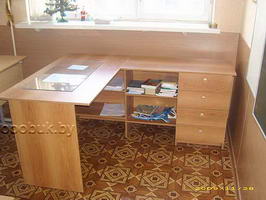 Стол письменный угловой со встроенной тумбочкой на 4 ящика. Количество ящиков может меняться и добавляться ниша