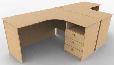 Стол письменный угловой со встроенной тумбочкой на 3 ящика и нишей