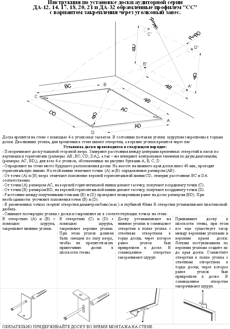 Инструкция по закреплению школьных досок обрамленных алюминиевым профилем- СС (стандартный)
