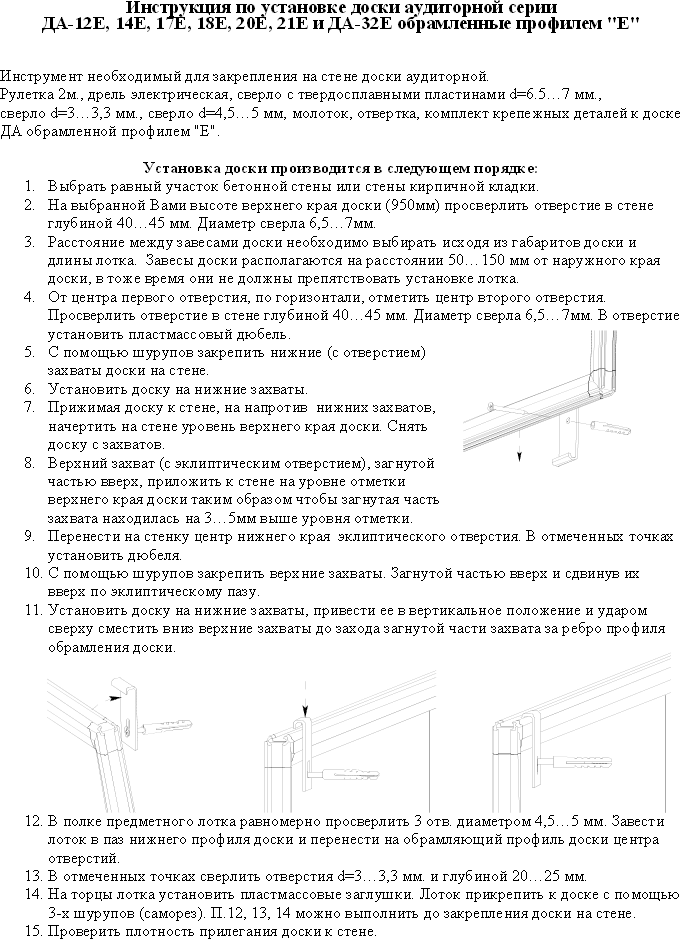 Инструкция по закреплению школьных досок обрамленных алюминиевым профилем - Е (европрофиль)