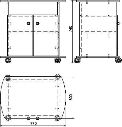 Тумбочка под телевизор на колесных опорах ТВ-2 выполнена из ламинированного ДСП (16 мм). Торцы корпуса оклеены кромкой ПВХ толщиной 2 мм. Под крышкой имеется открытая ниша для размещения аппаратуры. Широкая щель под крышкой позволяет пропустить необходимые кабели.