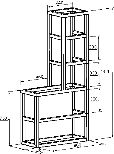 Габариты: 900 х 410 х 760 х 1820 мм.