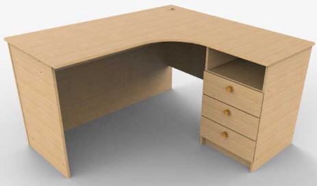 Стол угловой СУГ-3ян. Стол выполнен из ламинированного ДСП (16 мм), цвет – бук светлый. Торцы ножек стола оклеены кромкой ПВХ толщиной 0,5 мм, торцы крышки оклеены кромкой ПВХ – 2мм.