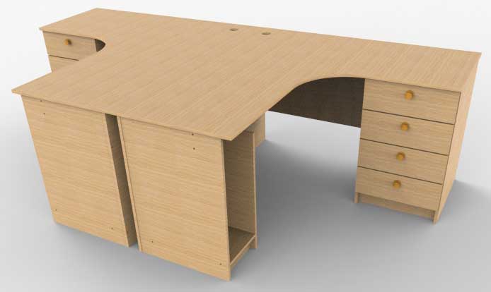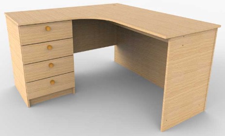 Стол угловой СУГ-4я. Стол выполнен из ламинированного ДСП (16 мм), цвет – бук светлый. Торцы ножек стола оклеены кромкой ПВХ толщиной 0,5 мм, торцы крышки оклеены кромкой ПВХ – 2мм.
