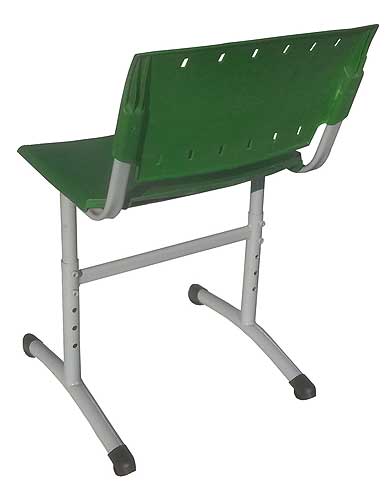 Стул ученический регулируемый по высоте с пластиковыми сидением и спинкой. Каркас цельносварной металлический из стальной трубы круглого сечения диаметром 32мм., и плоскоовальной трубы 30х15мм.